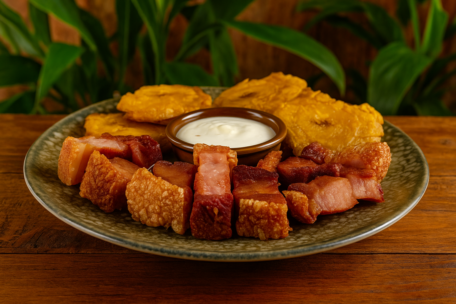 - El plátano macho, crujiente y dorado, aporta el toque tropical que define al Caribe.